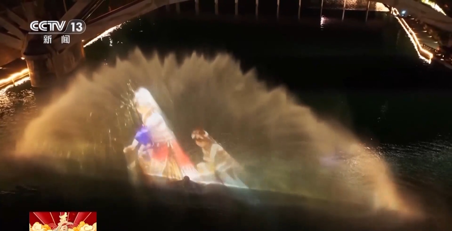 當(dāng)?shù)剡€精心打造水幕電影,形成色彩斑斕如夢(mèng)似幻的畫面,給觀眾帶來(lái)科技感十足的視覺(jué)盛宴。據(jù)統(tǒng)計(jì),春節(jié)期間每天接待游客量25萬(wàn)人次。