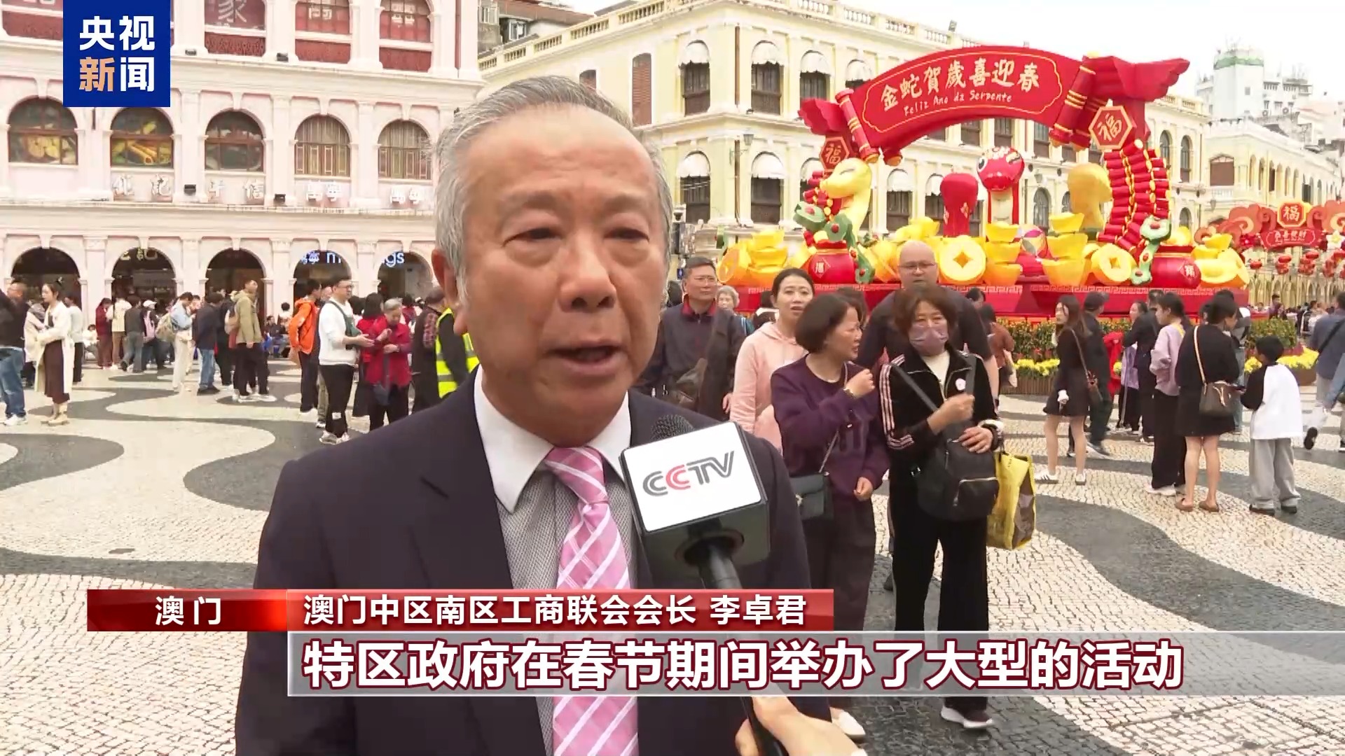 澳門(mén)中區(qū)南區(qū)工商聯(lián)會(huì)會(huì)長(zhǎng) 李卓君:特區(qū)政府在春節(jié)期間舉辦了大型的活動(dòng),比如花車(chē)巡游、煙花表演以及金龍獻(xiàn)瑞巡游,都讓游客很有新鮮感。