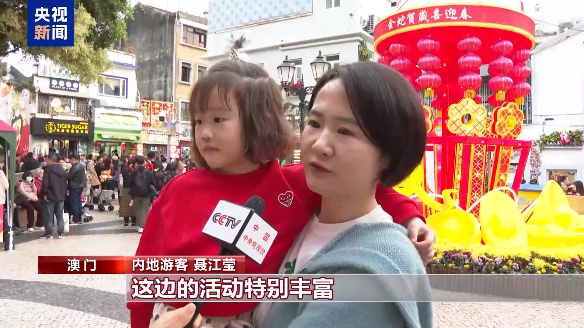 內(nèi)地游客 劉園園:這是我們第一次來(lái)到澳門(mén),感受到了非常濃厚的節(jié)日氛圍,度過(guò)了一個(gè)溫暖、非常有意義的中國(guó)年,也希望祖國(guó)繁榮昌盛,人民幸福安康。