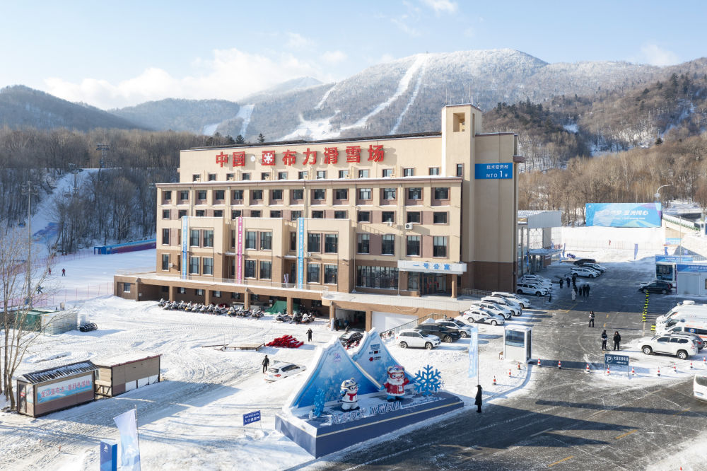 這是1月16日拍攝的位于亞布力滑雪場(chǎng)內(nèi)的第九屆亞冬會(huì)雪上賽區(qū)一角(無(wú)人機(jī)照片)。新華社記者謝劍飛攝