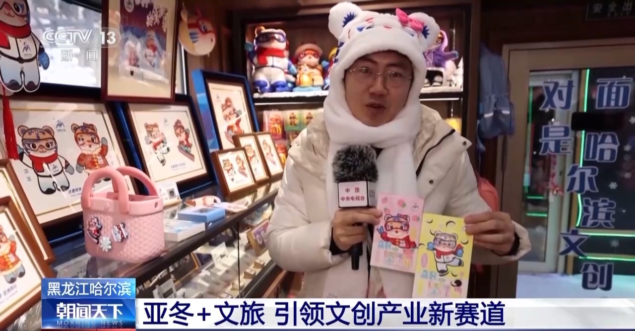 總臺(tái)記者 張程:我現(xiàn)在就位于中央大街二號(hào)的亞冬文創(chuàng)產(chǎn)品專營(yíng)店,隨著亞冬會(huì)的腳步漸行漸近,同時(shí)現(xiàn)在本就是哈爾濱的冰雪文旅旺季,這里幾乎每天都是游人如織、摩肩接踵。而其中有很多爆款文創(chuàng)產(chǎn)品,現(xiàn)在已經(jīng)幾乎賣到脫銷?! ?img alt="" src="./W020250207709257686487.jpg" OLDSRC="W020250207709257686487.jpg" />