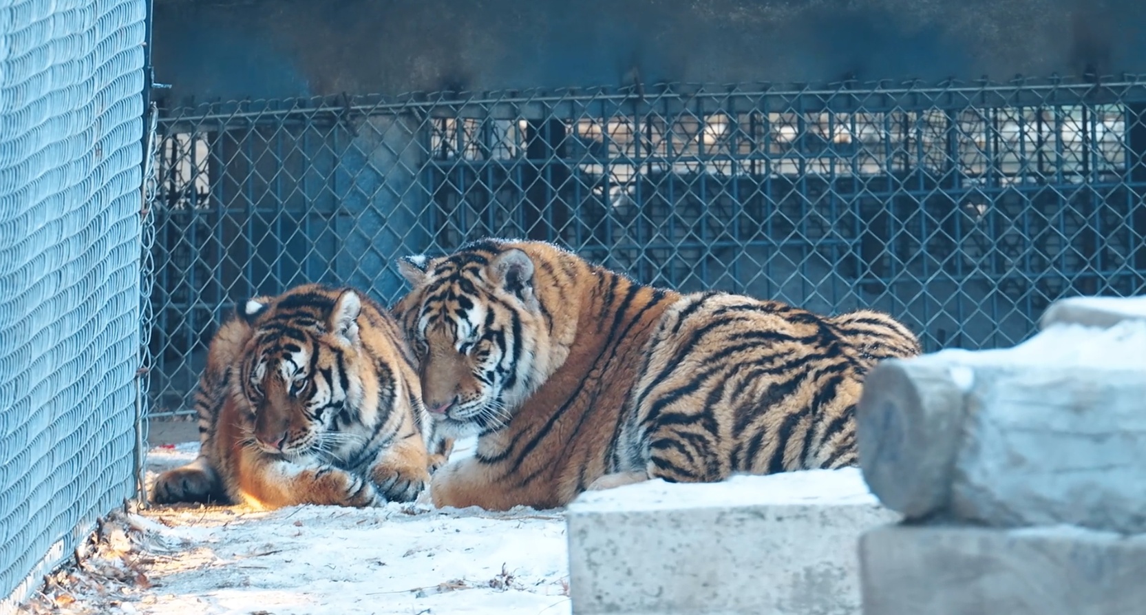 飼養(yǎng)員 楊忠亮:它們兩個現(xiàn)在是在一歲多快到一歲半了,體重也能達到150多斤以上了。我們給它提供了一個比較大的活動場地,讓它們能活動得比較開闊,能更好的與游客去見面。這個年齡段也是非常愛打愛斗愛鬧的年齡。游客隨時來到我們東北虎林園,也會隨時的看到它們和游客很好的一個互動。