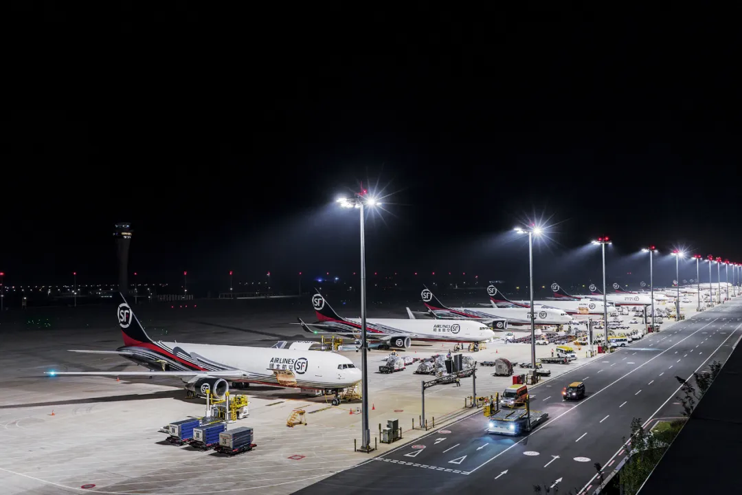 2024年5月15日,中國民用航空局批復(fù),同意“鄂州花湖機(jī)場”更名為“鄂州花湖國際機(jī)場”,花湖機(jī)場成為全國首個獲批國際機(jī)場的專業(yè)貨運(yùn)樞紐機(jī)場。順豐航空是全球首家進(jìn)駐花湖機(jī)場的貨運(yùn)航司,目前正以鄂州機(jī)場為中心,拓展、完善“覆蓋國內(nèi)、暢達(dá)國際”的航線網(wǎng)絡(luò)。順豐航空是花湖機(jī)場最大的駐場單位,作為公共平臺,花湖機(jī)場還引入了京東、圓通、中通等國內(nèi)外數(shù)十家專業(yè)物流公司,并結(jié)合區(qū)位優(yōu)勢和“空空中轉(zhuǎn)”特色服務(wù),打造“E轉(zhuǎn)全球”中轉(zhuǎn)服務(wù)品牌,精準(zhǔn)對接企業(yè)需求,提高通關(guān)時效,助力企業(yè)降本提質(zhì)增效。