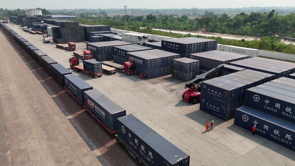 在中老鐵路萬(wàn)象南站換裝場(chǎng),一派繁忙而有序的景象映入眼簾。滿載泰國(guó)榴蓮、龍眼等貨物的集裝箱被穩(wěn)穩(wěn)吊裝上開(kāi)往中國(guó)的中老鐵路“瀾湄快線”列車,裝有中國(guó)啤酒、藥膏等貨物的集裝箱則啟程前往泰國(guó)。