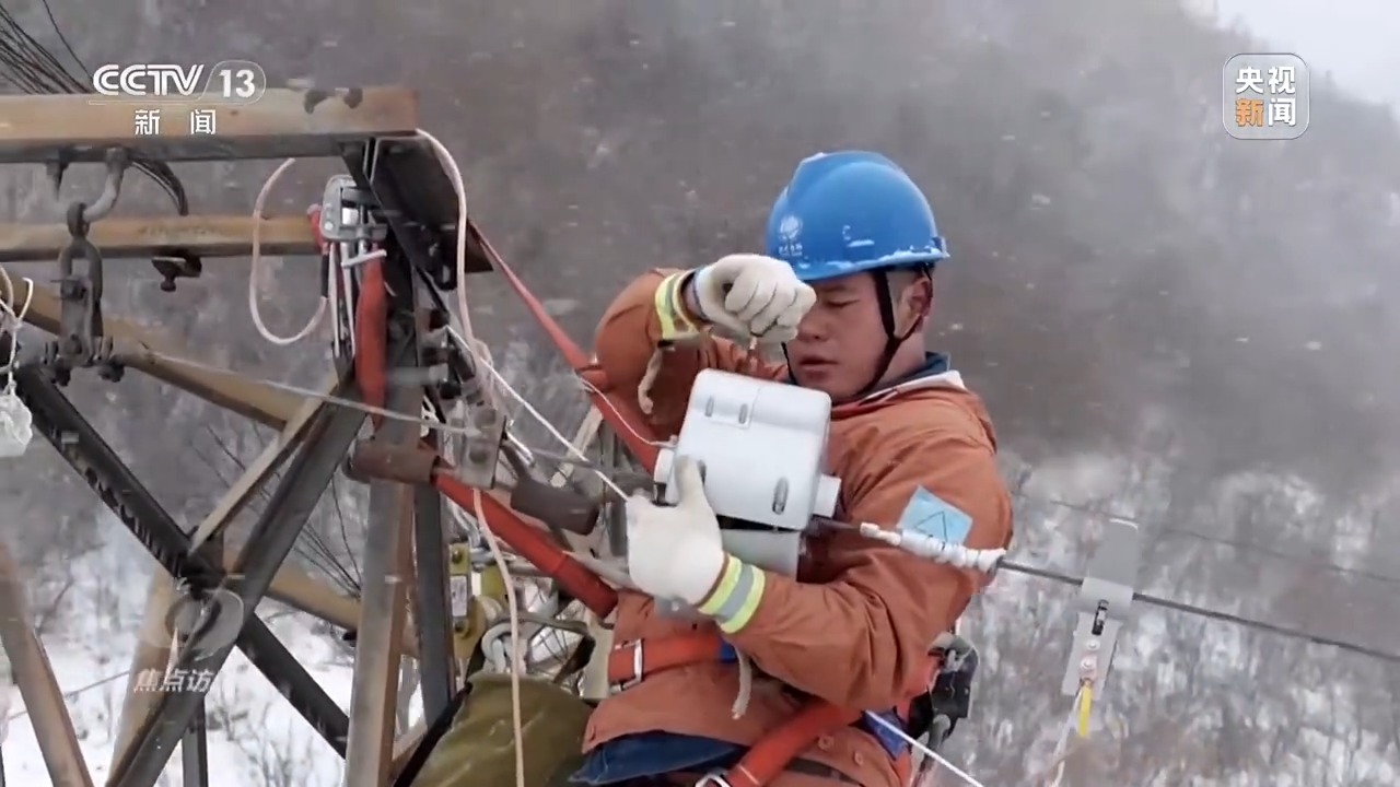 伴著2025春節(jié)的來臨,一場(chǎng)降雪為秦嶺披上銀裝。國(guó)網(wǎng)寶雞供電公司110千伏秦嶺融冰變電站,一臺(tái)安裝在輸電鐵塔上的監(jiān)測(cè)設(shè)備發(fā)生故障,工作人員正在商討對(duì)策。