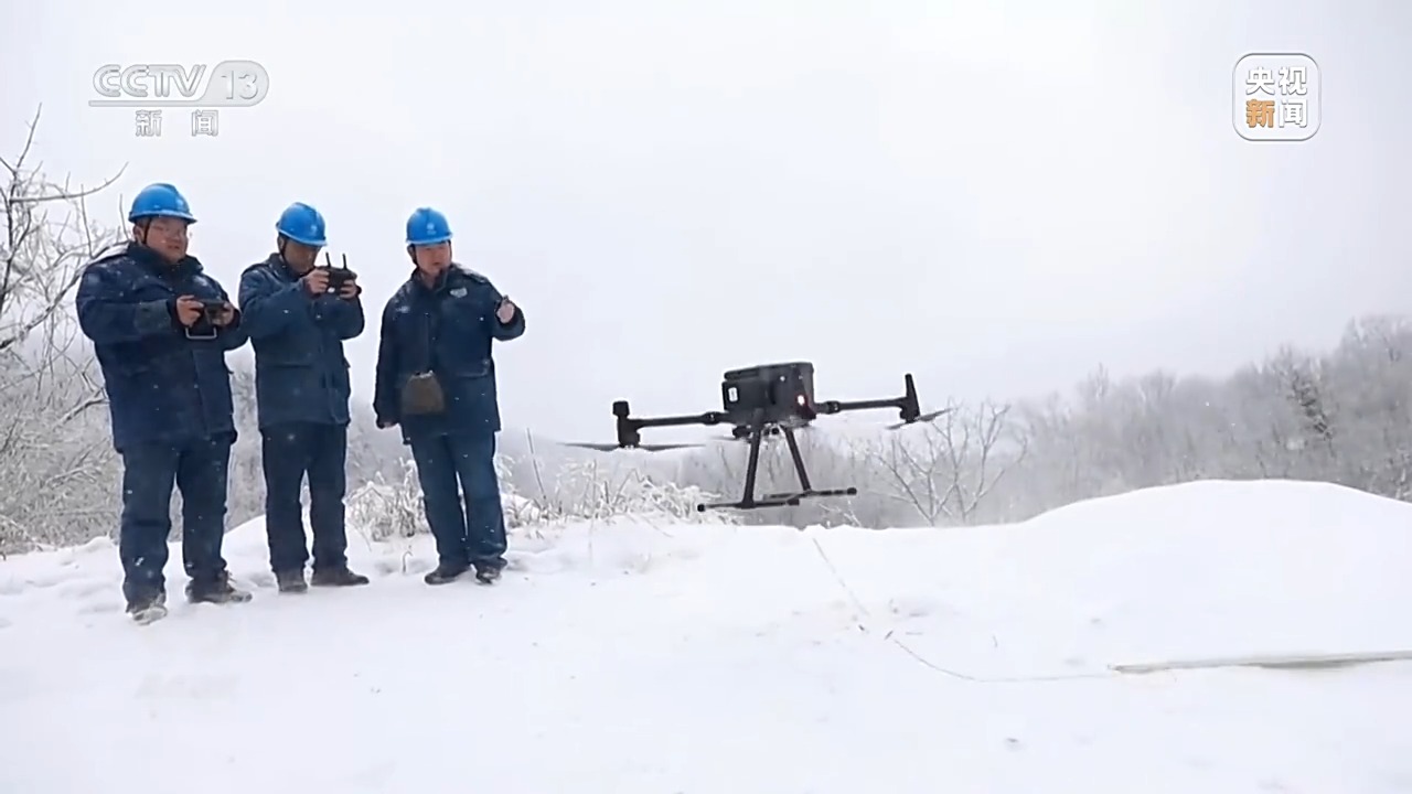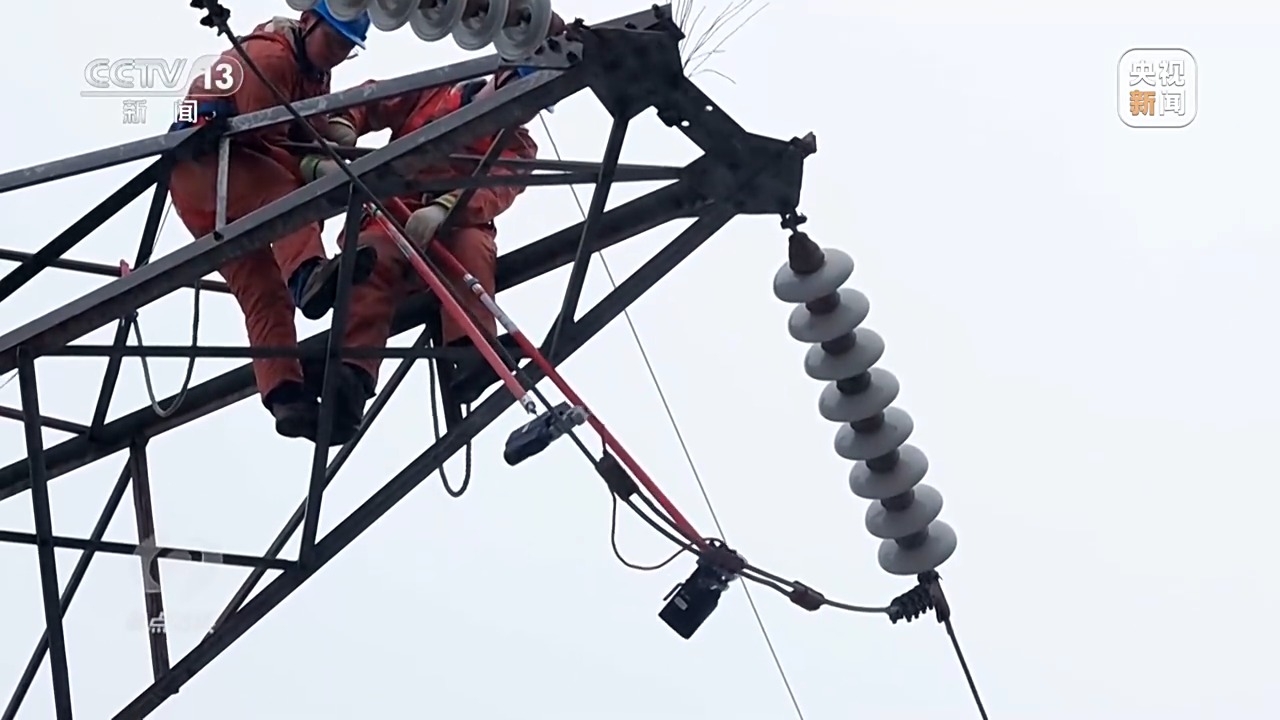 對(duì)于融冰站設(shè)備覆蓋范圍之外的線路,這些電力工人又嘗試?yán)?strong>無(wú)人機(jī)懸掛絕緣棒,撞擊覆冰。然而線路結(jié)冰并不只局限在導(dǎo)線上面,導(dǎo)線上、鐵塔上、絕緣子上都會(huì)結(jié)冰。