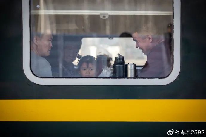 烏魯木齊至沈陽(yáng)的T304次列車(chē),途經(jīng)巴彥淖爾站時(shí),小女孩看著窗外,爺爺疼愛(ài)地看著孫女。