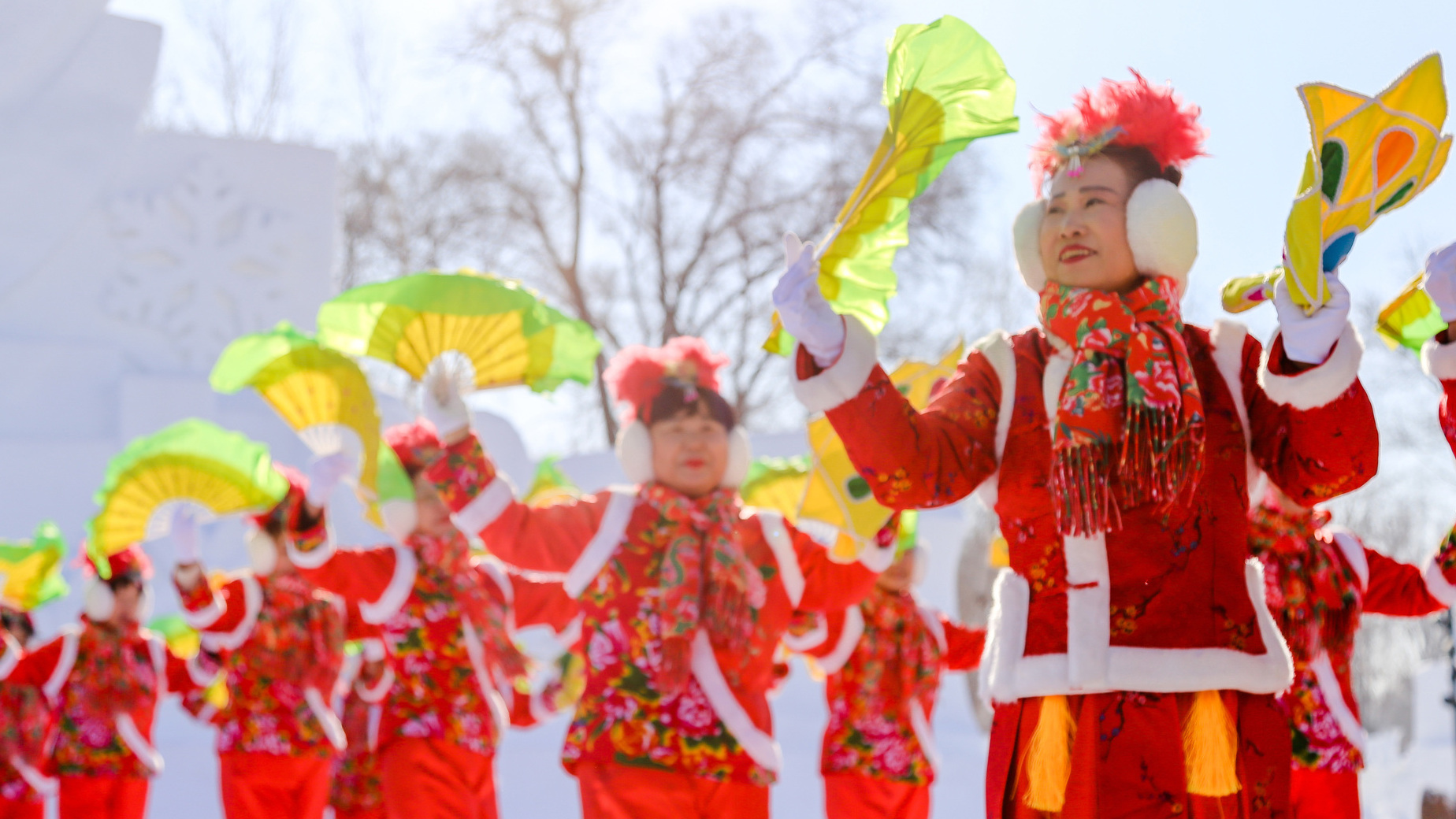 哈爾濱民間秧歌隊(duì)激情演繹迎賓秧歌舞