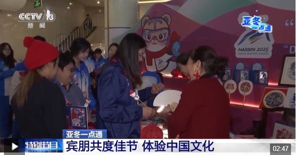 總臺央視記者 王晨:我現在是在位于哈爾濱亞冬會運動員村的一樓展廳,這里正在舉行“冰雪同夢·亞洲同心”非物質文化遺產展示活動。今天是開幕式后的第五個比賽日,展示活動持續(xù)進行中,有金漆技藝、方正剪紙、木雕重彩、皮影戲等非遺代表性項目展臺。