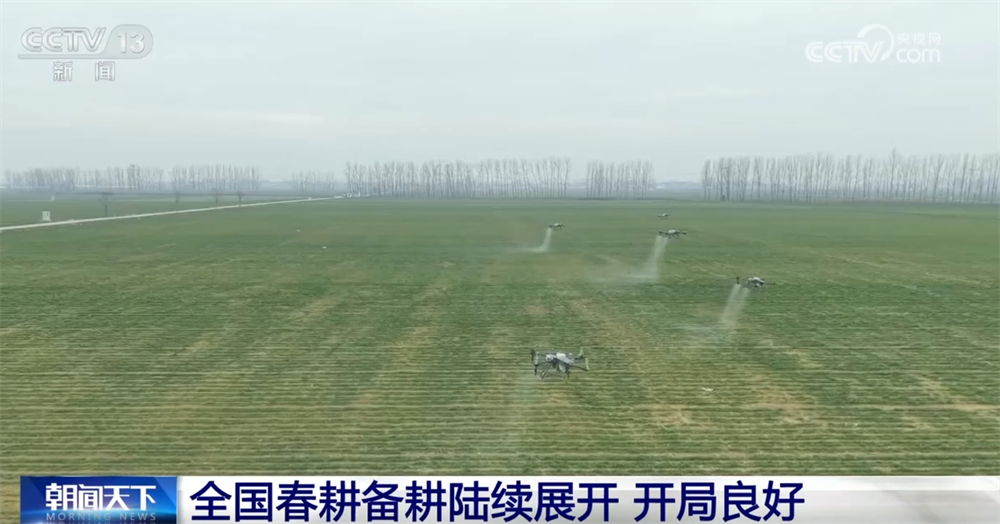 在湖北孝昌,13萬畝小麥進(jìn)入春季管護(hù)期。植保無人機(jī)騰空而起,沿著麥地勻速飛行,將肥料精準(zhǔn)噴灑在田間。當(dāng)?shù)剞r(nóng)技專家也通過看苗、看根判斷小麥的生長情況,現(xiàn)場指導(dǎo)農(nóng)戶進(jìn)行小麥春季管理。