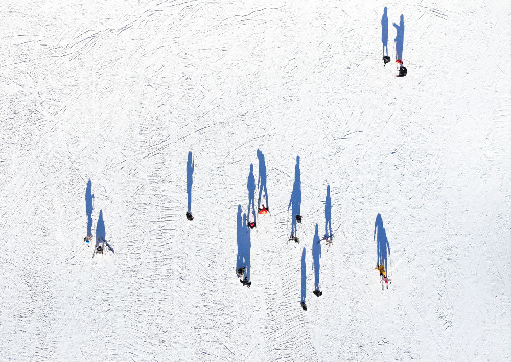 滑雪愛好者在內(nèi)蒙古呼倫貝爾扎蘭屯市金龍山滑雪場(chǎng)滑雪(無(wú)人機(jī)照片)新華社記者連振 攝