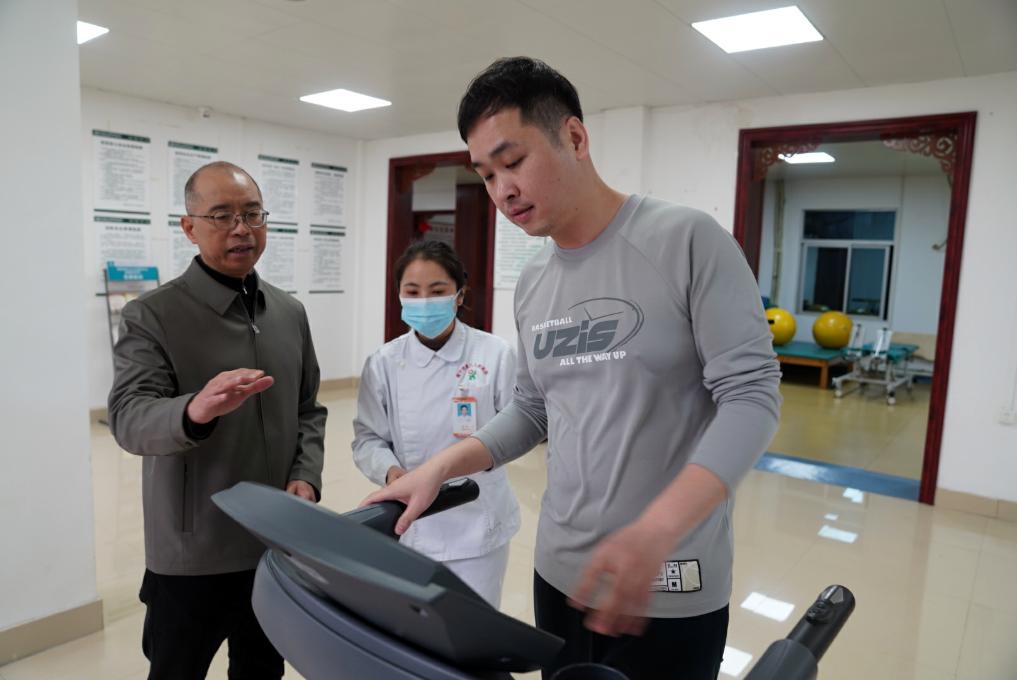 2月18日,韋軍在廣西南寧市西鄉(xiāng)塘區(qū)衡陽街道南鐵社區(qū)衛(wèi)生服務(wù)中心走訪,了解衛(wèi)生服務(wù)中心對群眾進(jìn)行運(yùn)動(dòng)指導(dǎo)的情況。新華社記者 陳露緣 攝