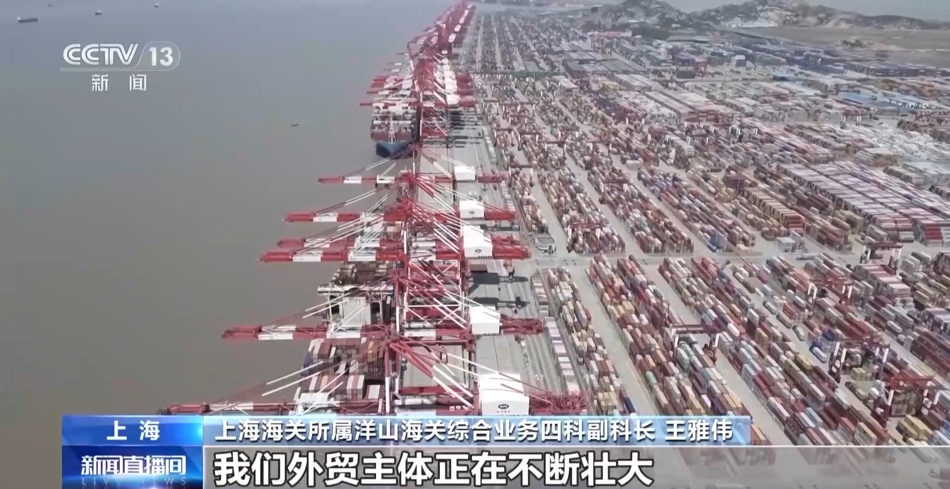 上海海關(guān)所屬洋山海關(guān)綜合業(yè)務(wù)四科副科長(zhǎng) 王雅偉:今年1月份以來(lái),我們共受理海關(guān)進(jìn)出口報(bào)關(guān)單3.3萬(wàn)份,較去年同期增長(zhǎng)了近兩個(gè)百分點(diǎn)。這些數(shù)據(jù)讓我們明顯感覺(jué)到,外貿(mào)主體正在不斷壯大,外貿(mào)市場(chǎng)活力也在持續(xù)增強(qiáng)。