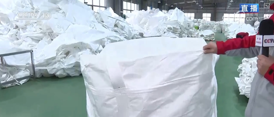 這個叫集裝袋,俗稱“噸袋”,是化工企業(yè)和冶金企業(yè)等行業(yè)大量使用的耗材。這是一個能裝三噸重東西的、高質量、可出口的集裝袋。