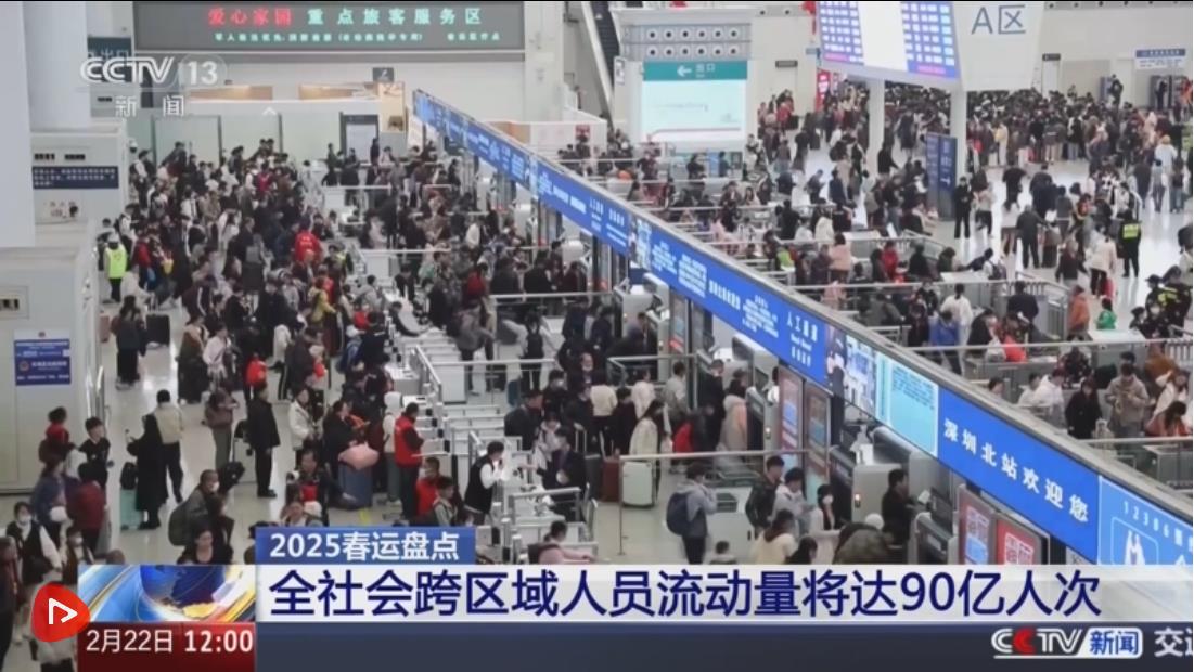 歷時(shí)40天的2025年春運(yùn)2月22日將結(jié)束。今年春運(yùn)從1月14日開(kāi)始,多項(xiàng)數(shù)據(jù)創(chuàng)歷史新高。交通運(yùn)輸部預(yù)計(jì),整個(gè)春運(yùn)期間,全社會(huì)跨區(qū)域人員流動(dòng)量將達(dá)90億人次。