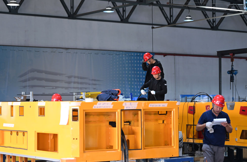 工作人員在天津朗譽機器人有限公司組裝設(shè)備。 新華社記者 李然 攝