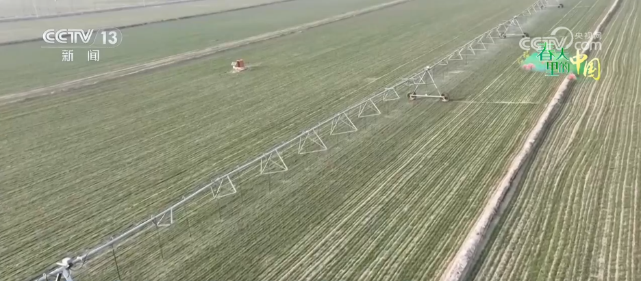 在安陽(yáng)市滑縣的一個(gè)高標(biāo)準(zhǔn)農(nóng)田示范區(qū),集中連片種植的小麥已經(jīng)逐漸轉(zhuǎn)綠。種植戶正趁著晴好天氣,利用自動(dòng)噴灌機(jī)對(duì)小麥進(jìn)行澆水,補(bǔ)充土壤墑情。
