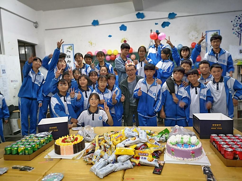 圖為李微楠和云南省紅河州建水縣第四中學的學生在一起。(受訪者供圖)