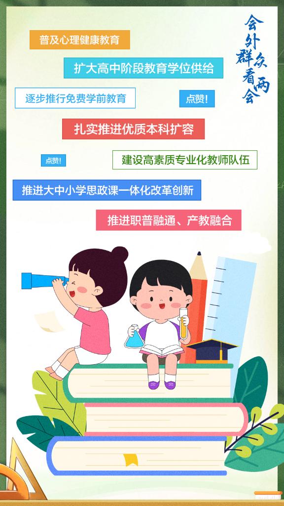 教育事關(guān)每個家庭。今年的政府工作報告提出,加快建設(shè)高質(zhì)量教育體系,制定實施教育強國建設(shè)三年行動計劃……對于報告相關(guān)的教育“熱搜話題”,群眾怎么看?