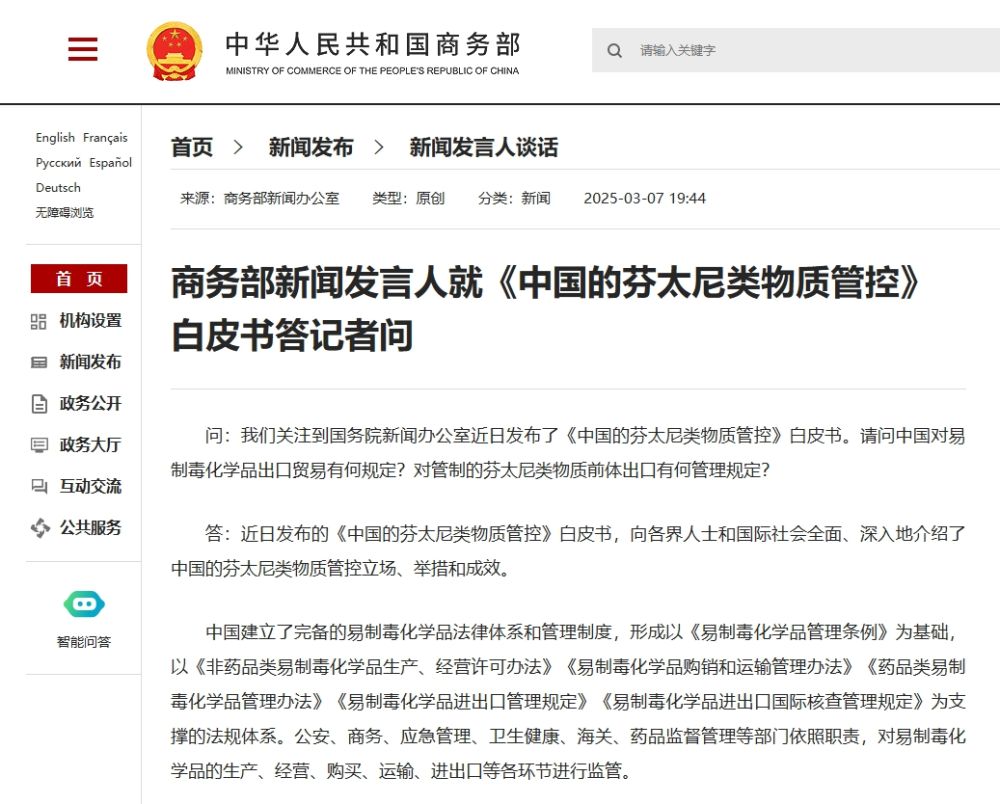 答:近日發(fā)布的《中國(guó)的芬太尼類物質(zhì)管控》白皮書(shū),向各界人士和國(guó)際社會(huì)全面、深入地介紹了中國(guó)的芬太尼類物質(zhì)管控立場(chǎng)、舉措和成效。