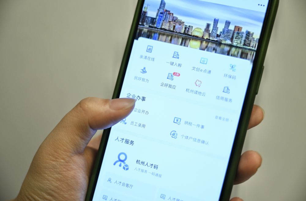 圖為“浙里辦”手機應用客戶端上的杭州企業(yè)服務專區(qū)。新華社記者 劉銘翔 攝