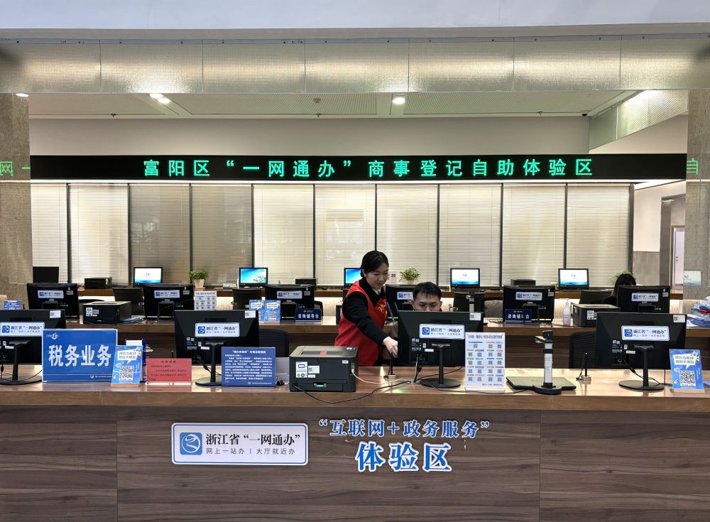 2月18日,在杭州市富陽區(qū)政務服務中心,工作人員引導群眾自助辦理“一網通辦”事項。(受訪單位供圖)