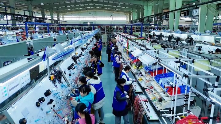 在湖南天海電器有限公司,生產線一片忙碌景象。受訪者供圖。