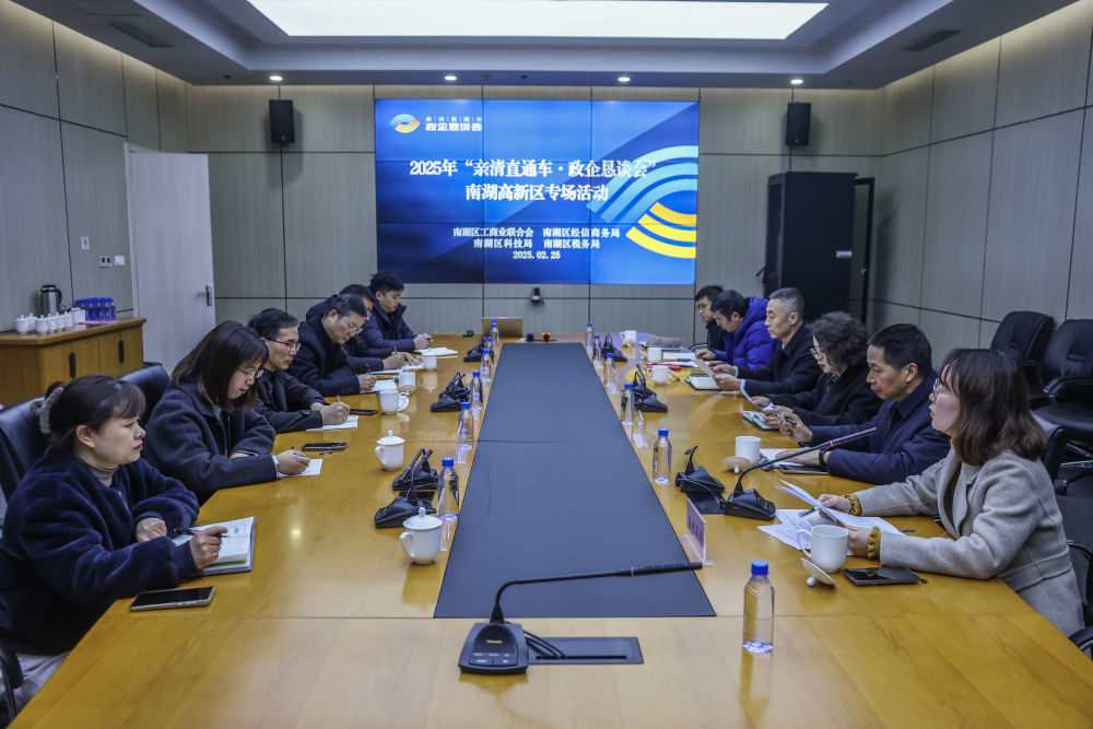 2月25日,浙江省嘉興市南湖區(qū)工商聯召開“親清直通車·政企懇談會”,為企業(yè)排憂解難,助力民營企業(yè)穩(wěn)健發(fā)展。新華社記者 徐昱 攝
