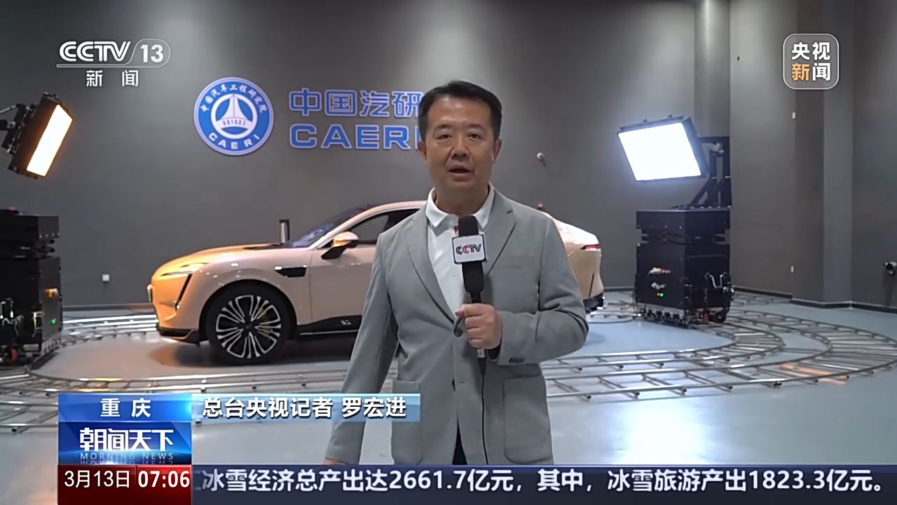 總臺央視記者 羅宏進:來到中國汽車工程研究院的整車光環(huán)境實驗室,我們可以看到,我身后有兩臺能夠360°移動的光源,它可以模擬一年四季一天24小時不同時刻的光線。智能網(wǎng)聯(lián)新能源汽車的快速發(fā)展,車上攝像頭的數(shù)量明顯增加,就好比人的眼睛一樣,要給它們進行精準的檢測。