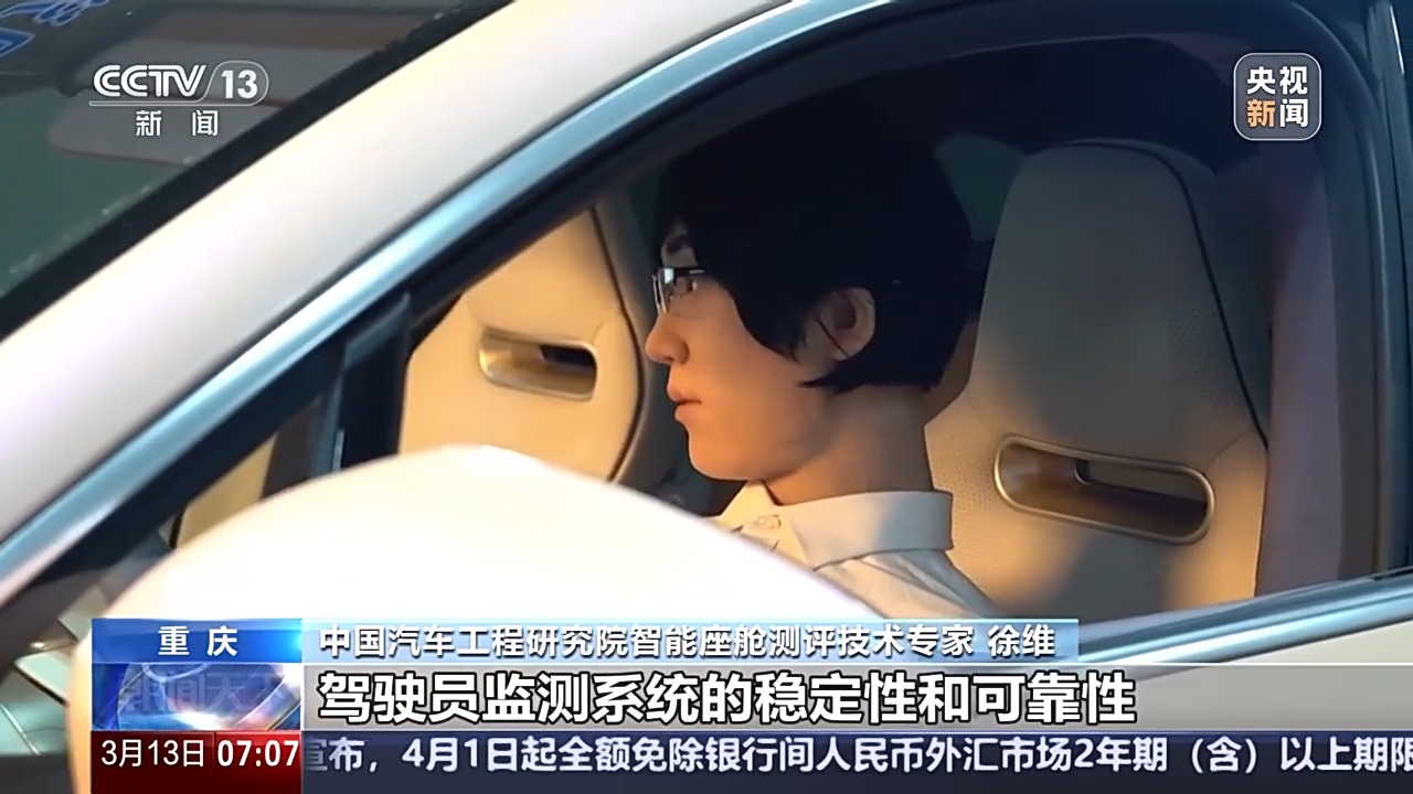 測試過程中,記者注意到車上的“駕駛員”有點特別,原來這是團隊自主研發(fā)的仿生機器人,它的作用主要用于測試車內(nèi)的攝像頭,也就是俗稱的“駕駛疲勞監(jiān)控系統(tǒng)”。