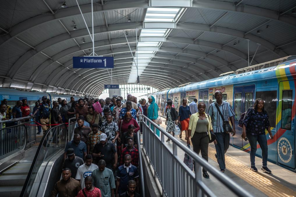 2024年12月2日,在尼日利亞拉各斯,乘客走在輕軌藍線的站臺上。拉各斯輕軌藍線是西非地區(qū)首條由中國企業(yè)自主設(shè)計、建造、施工、運營的電氣化城市軌道交通項目。新華社記者 王冠森 攝