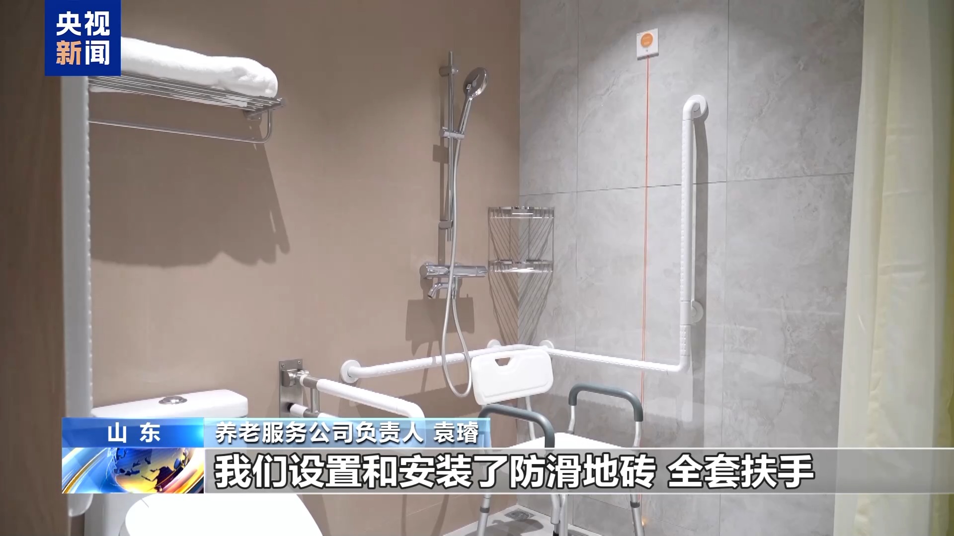 養(yǎng)老服務(wù)公司負責人 袁璿:在比較容易發(fā)生危險的衛(wèi)生間區(qū)域,我們設(shè)置和安裝了防滑地磚、全套扶手、按動式和拉繩式的緊急呼叫系統(tǒng),通過不斷豐富供給,提升我們的服務(wù)質(zhì)量。