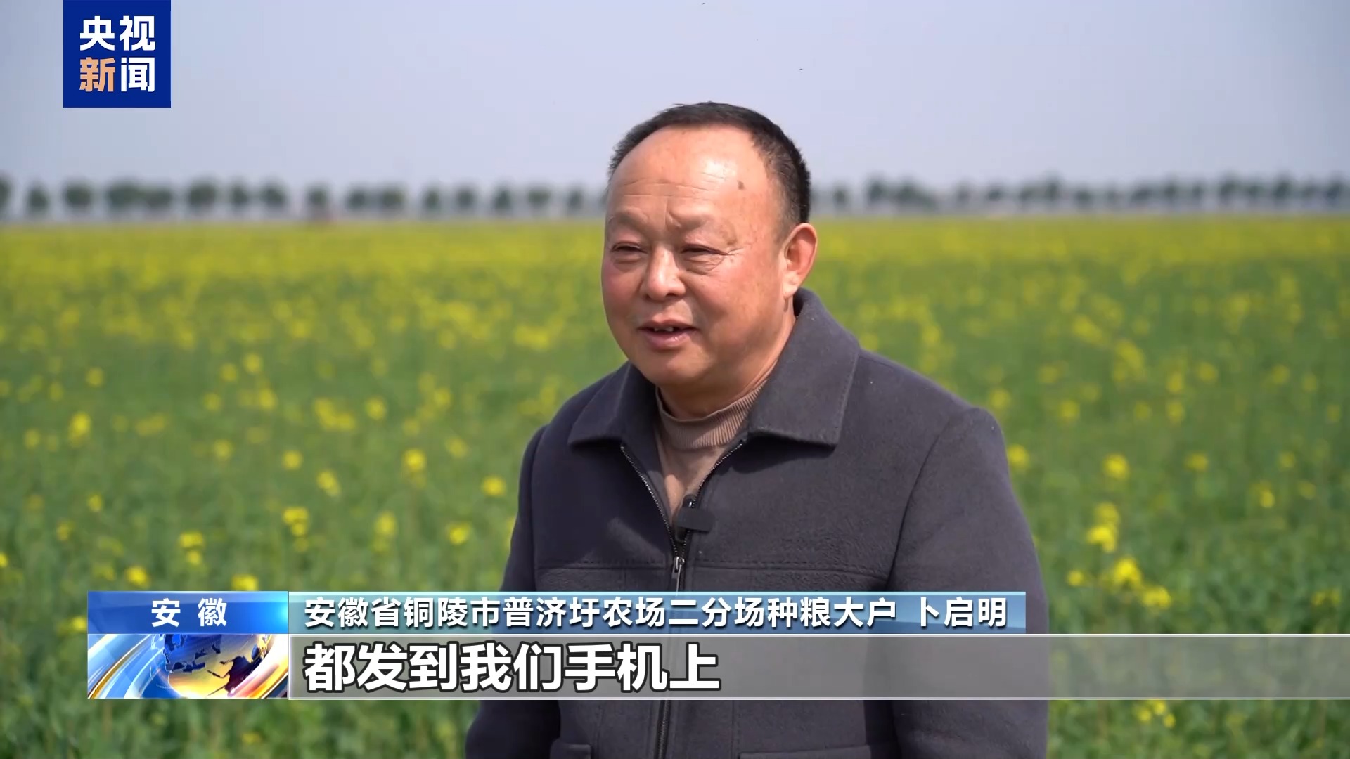 安徽省銅陵市普濟圩農(nóng)場二分場種糧大戶 卜啟明:以前我們種糧靠天收,在電視上看天氣預(yù)報,現(xiàn)在科技發(fā)達了,都發(fā)到我們手機上。