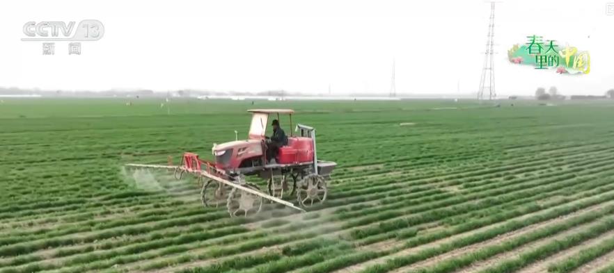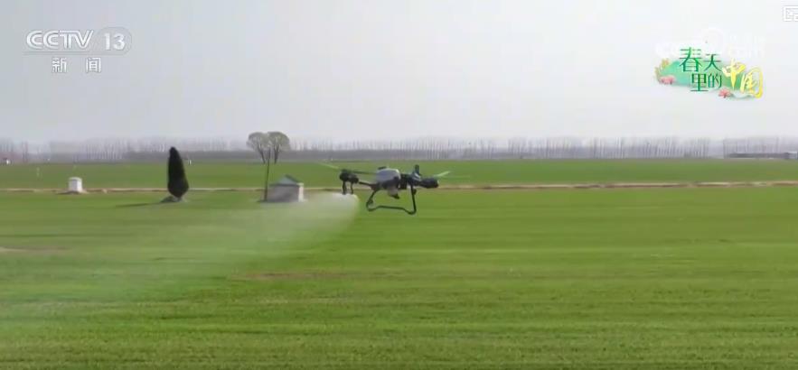 在山東濟(jì)南市,冬小麥正處于田間管理和產(chǎn)量形成的關(guān)鍵期,當(dāng)?shù)剞r(nóng)技人員綜合利用植保無(wú)人機(jī)、水肥一體化智慧滴灌等科技手段,精細(xì)化開(kāi)展田間管理。