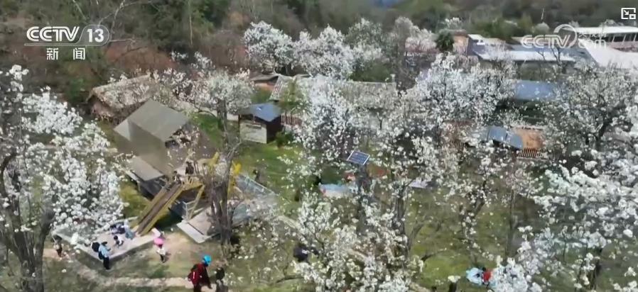 近年來,當(dāng)?shù)匾曰槊?,大力發(fā)展“賞花經(jīng)濟(jì)”,將賞花和河灘游船、鄉(xiāng)村茶館等打卡點(diǎn)串聯(lián),打造以觀賞游玩和生態(tài)休閑為一體的游玩路線。每年梨花盛開期都能吸引大批游客,帶動(dòng)當(dāng)?shù)孛袼?、餐飲業(yè)發(fā)展,促進(jìn)村民增收。