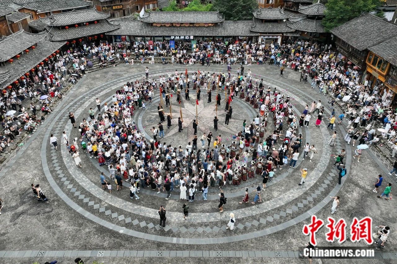 游客在貴州西江千戶苗寨游玩。中新社記者 瞿宏倫 攝
