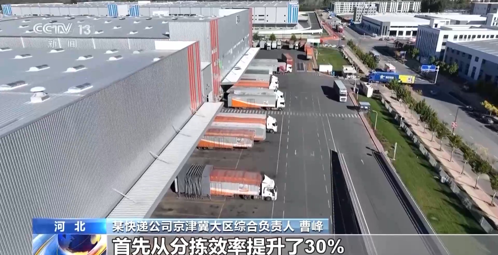 在廊坊固安的這家快遞公司華北轉(zhuǎn)運(yùn)中心,近百個(gè)進(jìn)出港卸貨口同時(shí)操作,全鏈路數(shù)智化設(shè)備同步運(yùn)轉(zhuǎn)。大量快遞包裹在運(yùn)輸帶上被快速掃描、分揀,整個(gè)過程都在智能管理系統(tǒng)的調(diào)配下完成,最快僅需10分鐘便可完成裝車。