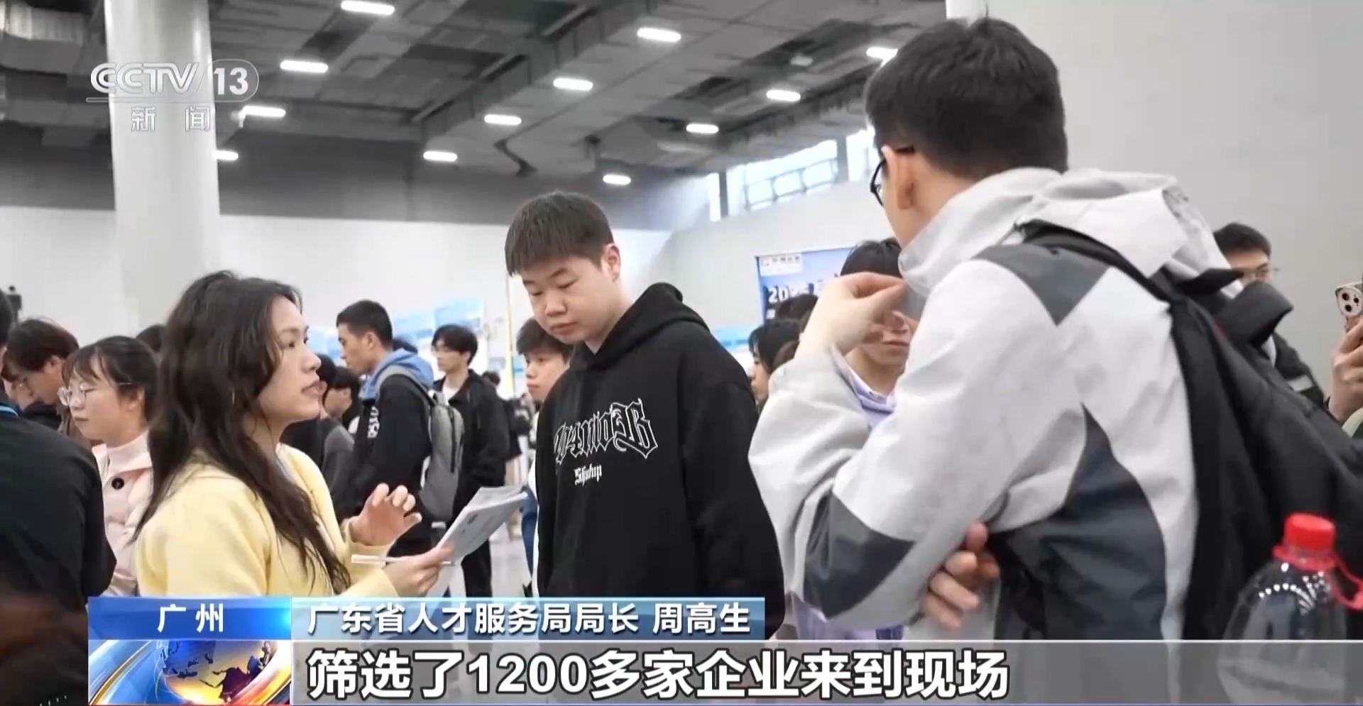 總臺(tái)央視記者 唐蕾:在廣州市琶洲廣交會(huì)展館,和往年比,今年春招規(guī)模擴(kuò)大了近3倍,在這里,不僅有一站式的招聘會(huì),還有人工智能與機(jī)器人專場(chǎng)項(xiàng)目對(duì)接會(huì)等多種人才對(duì)接活動(dòng)。