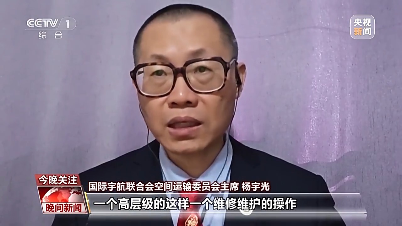 國際宇航聯(lián)合會空間運輸委員會主席 楊宇光:我們已經(jīng)開始對空間站高層級的維修維護操作,同時這些活動本身也在為我們未來更復雜、更具挑戰(zhàn)性的出艙活動奠定基礎。