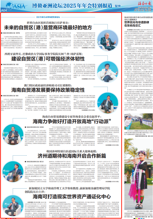 3月25日下午,全球自由貿(mào)易港發(fā)展論壇在博鰲舉行。海南日?qǐng)?bào)全媒體記者 王程龍 攝