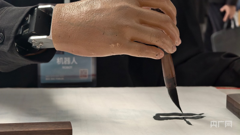 佩戴“工牌”的機器人(央廣網記者 朱冠安 攝)