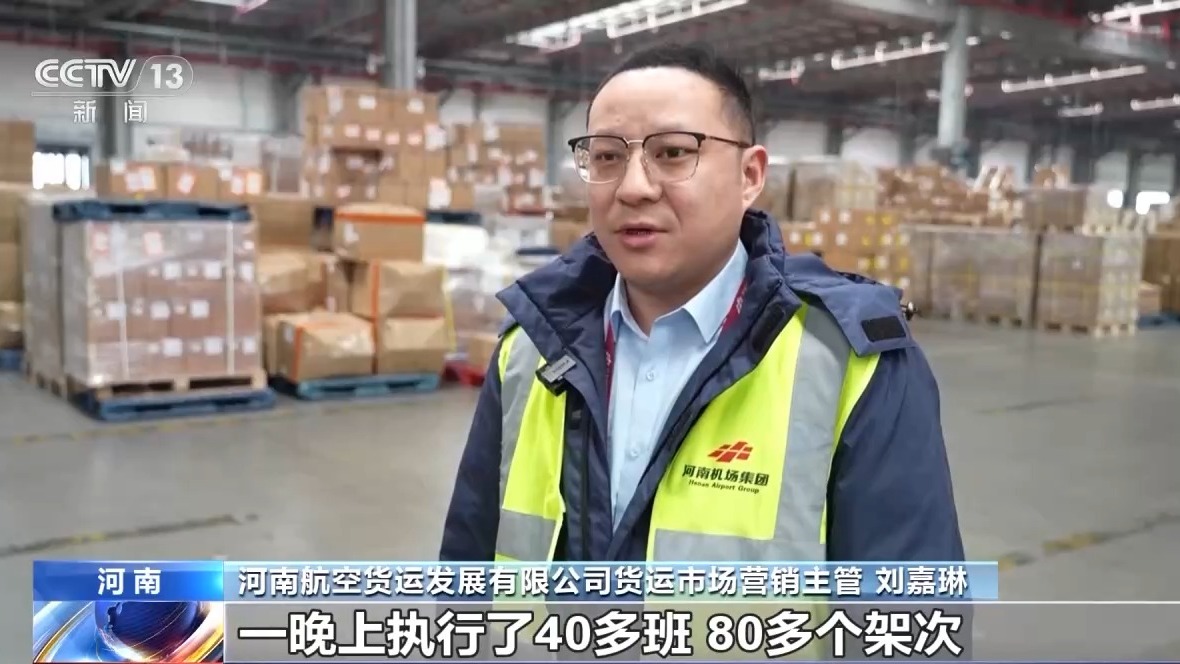 河南航空貨運(yùn)發(fā)展有限公司貨運(yùn)市場(chǎng)營(yíng)銷主管 劉嘉琳:最繁忙的時(shí)候,一晚上執(zhí)行了40多班,80多個(gè)架次。每一個(gè)環(huán)節(jié)、每個(gè)時(shí)間節(jié)點(diǎn)我們都有監(jiān)控,哪個(gè)節(jié)點(diǎn)出現(xiàn)問(wèn)題了,耽擱的時(shí)間比較長(zhǎng)了,后臺(tái)對(duì)現(xiàn)場(chǎng)進(jìn)行提醒。高峰期加派人員,大大提高了作業(yè)效率。
