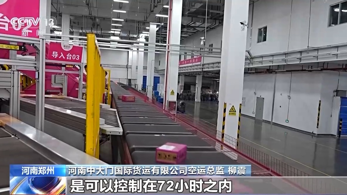 河南中大門國(guó)際貨運(yùn)有限公司空運(yùn)總監(jiān) 柳震:從國(guó)內(nèi)工廠提貨,到整個(gè)航班在境外口岸落地,我們整體的時(shí)效是可以控制在72小時(shí)之內(nèi),完全符合高效運(yùn)轉(zhuǎn)的時(shí)效要求。