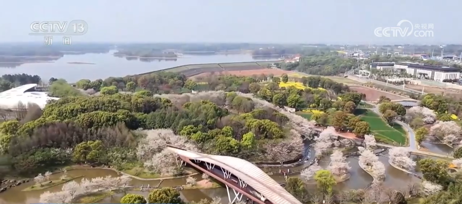 景區(qū)內(nèi)整排的櫻花綿延綻放,形成了一片粉白色的花海。微風(fēng)拂過(guò),粉白的花瓣隨風(fēng)飄舞,游客們漫步在櫻花樹(shù)下,拿出手機(jī)、相機(jī),記錄這春日好風(fēng)景。