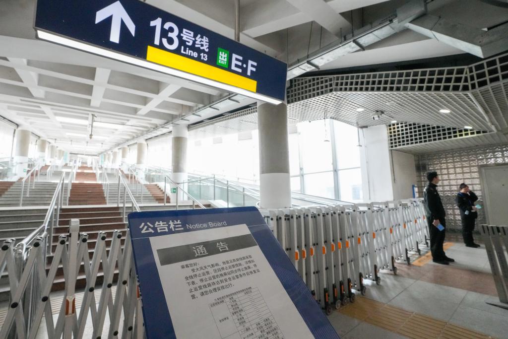 4月12日,北京地鐵西直門站13號(hào)線換乘入口張貼了部分軌道交通線路因大風(fēng)天氣停運(yùn)的通知。當(dāng)日,我國北方多地出現(xiàn)大風(fēng)降溫天氣。新華社記者 鞠煥宗 攝