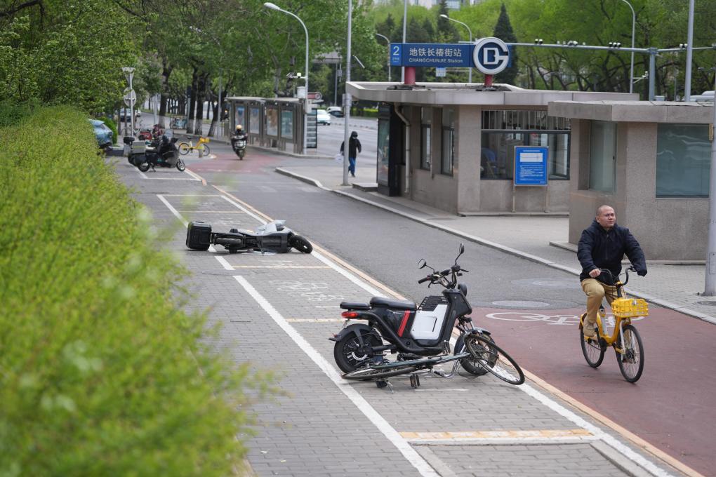 4月12日,一名男子在北京的大風(fēng)中騎行。當(dāng)日,我國北方多地出現(xiàn)大風(fēng)降溫天氣。新華社記者 金立旺 攝