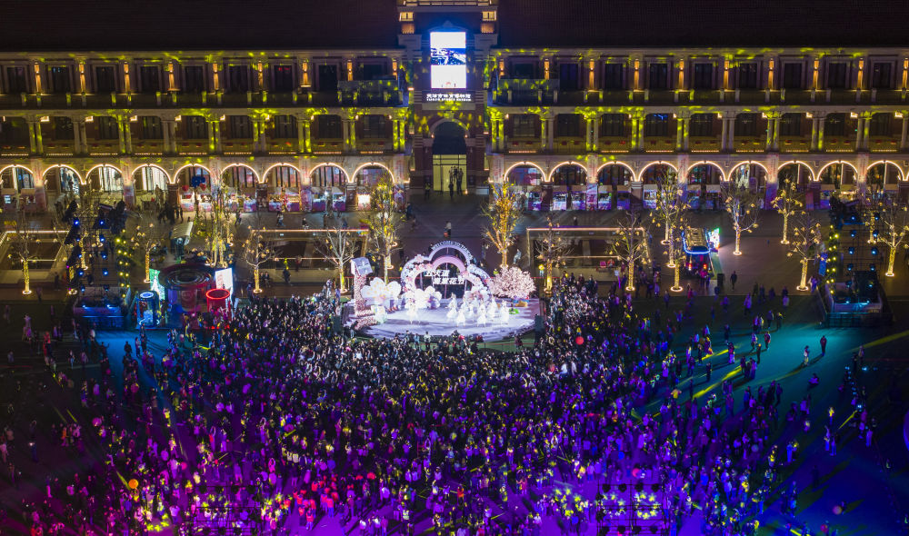 這是4月3日拍攝的第三屆五大道海棠花節(jié)啟幕現(xiàn)場(無人機照片)。明媚春日帶動人們賞花踏青出游熱情,“春日經(jīng)濟”熱力十足。(新華社記者 趙子碩 攝)