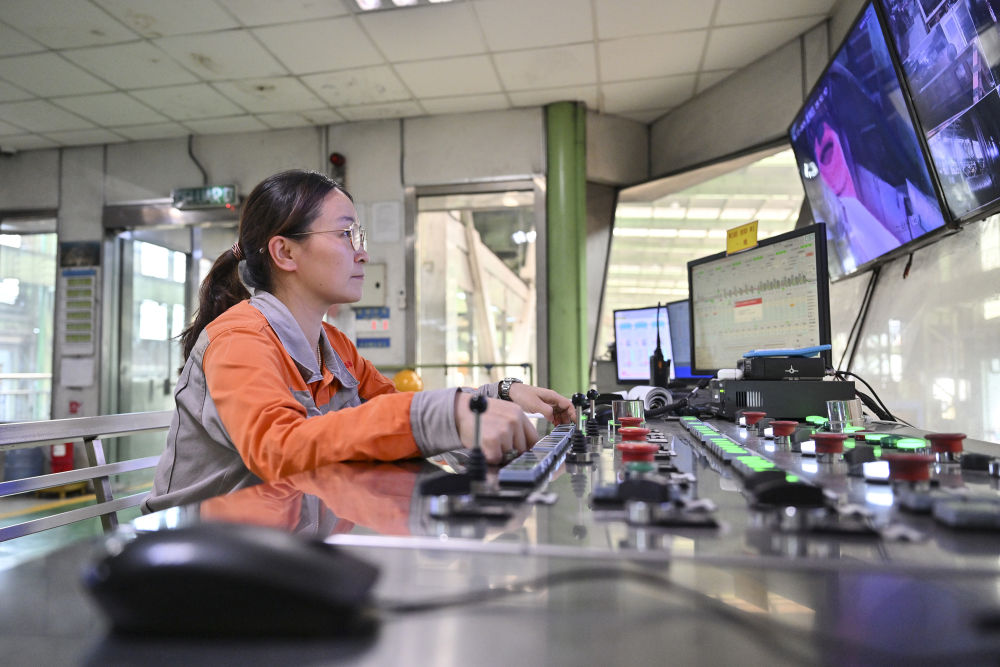 2024年6月13日,在馬來(lái)西亞彭亨州馬中關(guān)丹產(chǎn)業(yè)園聯(lián)合鋼鐵(大馬)集團(tuán)公司工廠(chǎng),中國(guó)員工在智能控制室工作。