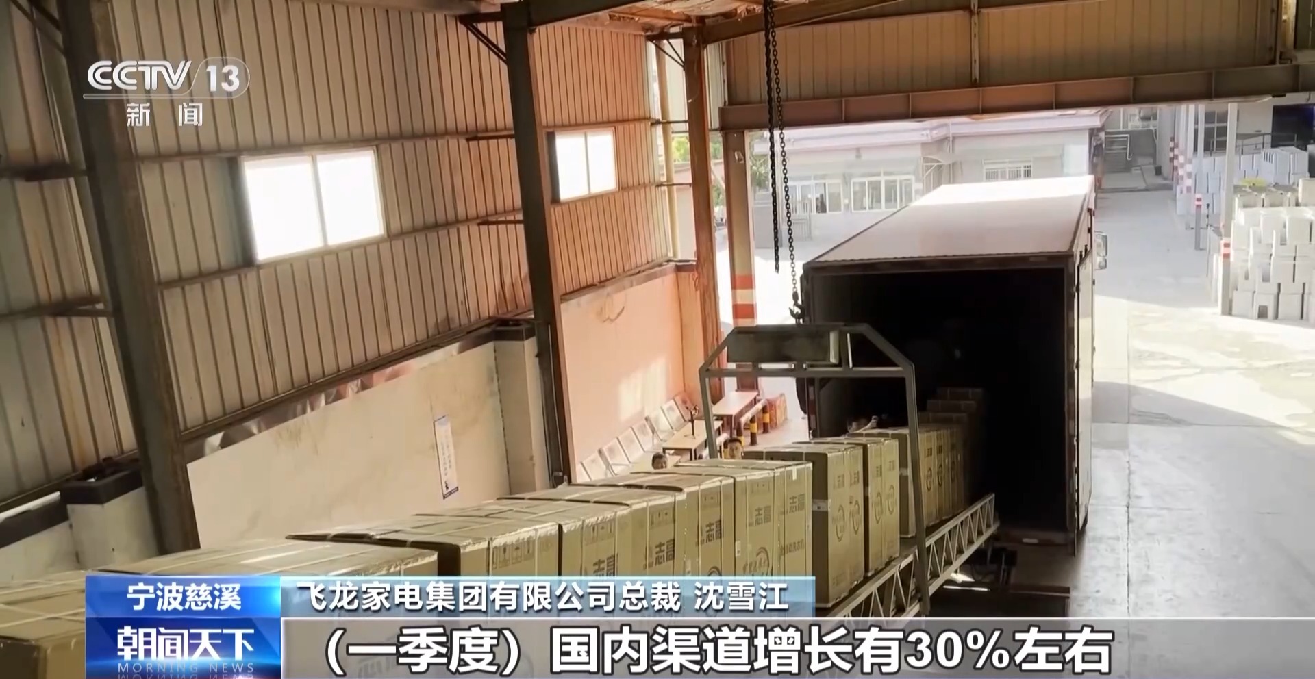 飛龍家電集團(tuán)有限公司總裁 沈雪江:我們每天都有貨發(fā)往上海、北京、鄭州這些地方。由于國補(bǔ)政策,一季度國內(nèi)渠道增長有30%左右。