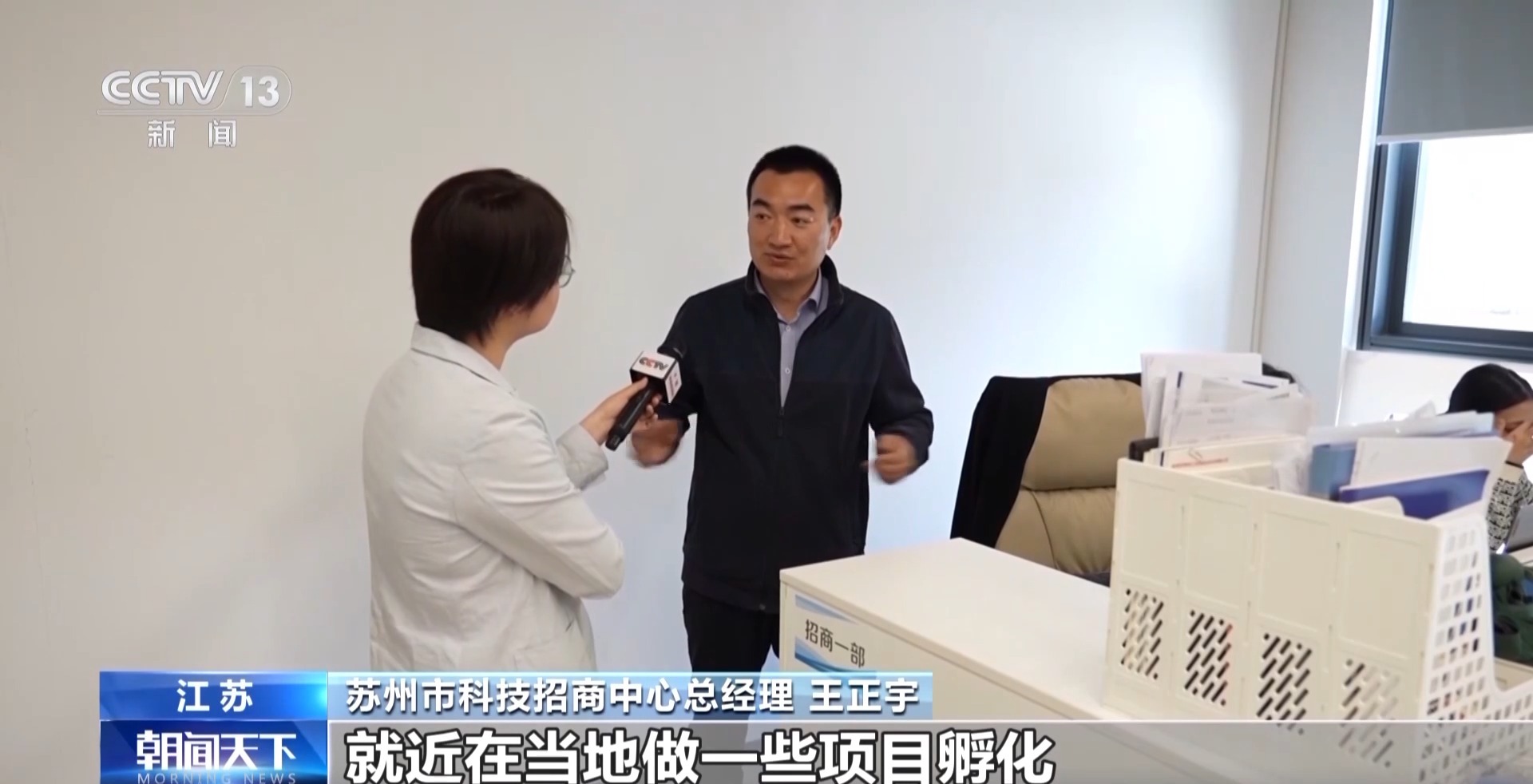 蘇州市科技招商中心總經(jīng)理 王正宇:方便這些高校的老師跟研究生,就近在當(dāng)?shù)刈鲆恍╉?xiàng)目的孵化。我們匹配一些載體、政策,包括資金的支持,條件成熟的時候,我們再讓他到蘇州來落地發(fā)展。